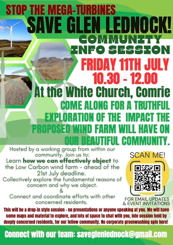 For the past few weeks I have been travelling and insulated from issues at home. While I was away, the Glen Lednock wind farm application appeared on the Energy Consents Unit website. This is on Invergeldie Estate, bought by Oxygen Conservation, as I mentioned in a previous post. They have hived off its development to a sister company Low Carbon.